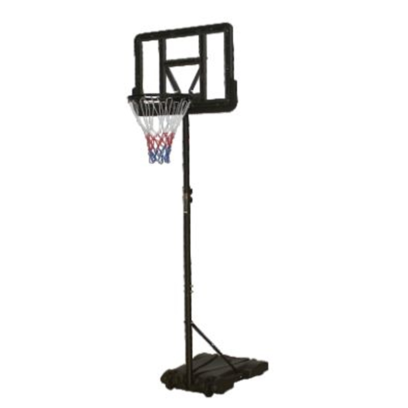• RimInner Dia.: 39cmBackboard Size: 71 x 45 m (28 inches)Base Size: 74 x 55 x 13cmSteelTube Dia.:45mmNet material: weather resistance nylonAdjustable Height: Min 1.79m, Max 2.13mMaterial: Steeltube + PE+PC backboard + PE base + SteelrimPortable built-in wheels, can be easily moved on a certain lea